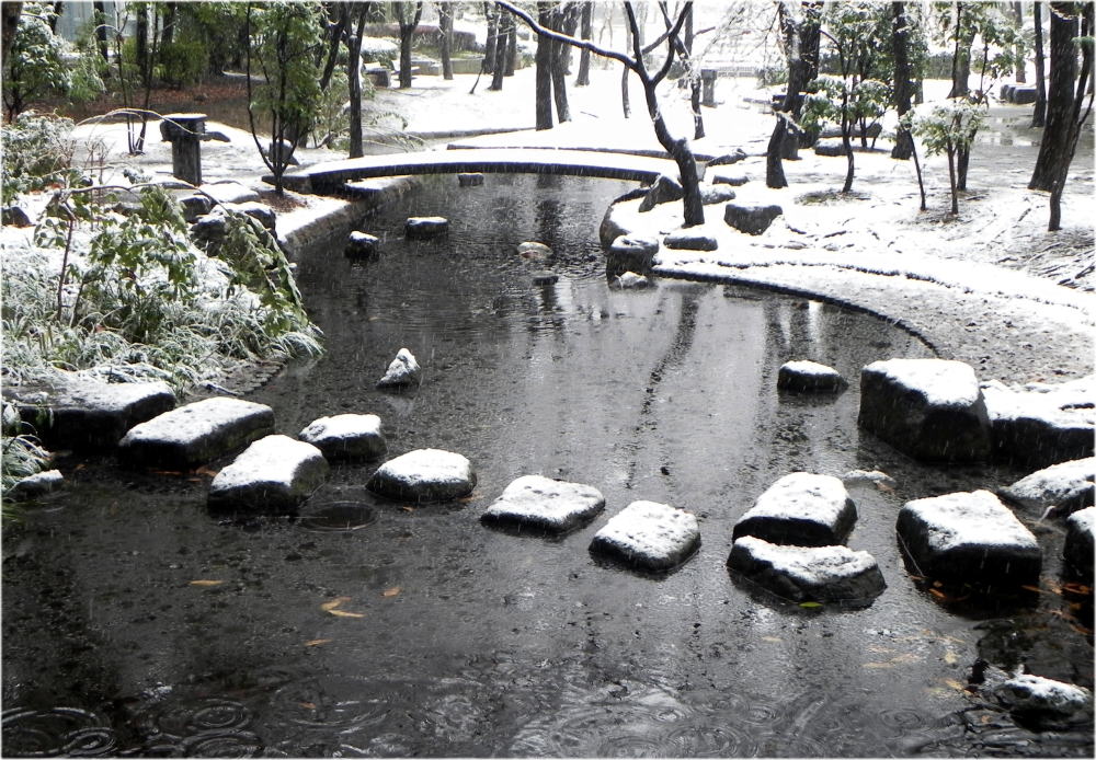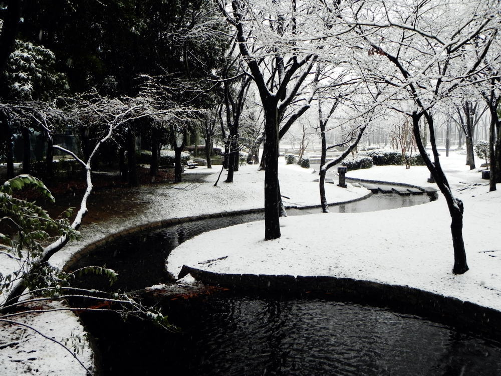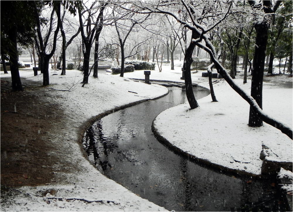 川辺の雪