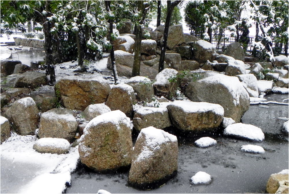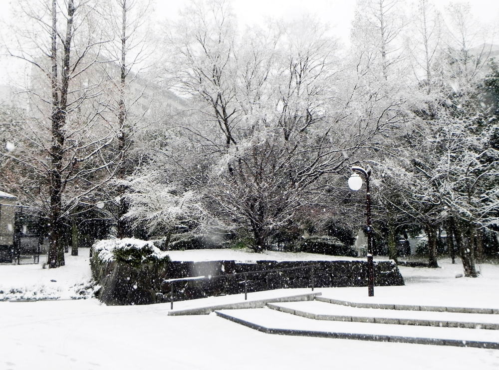 中庭の雪