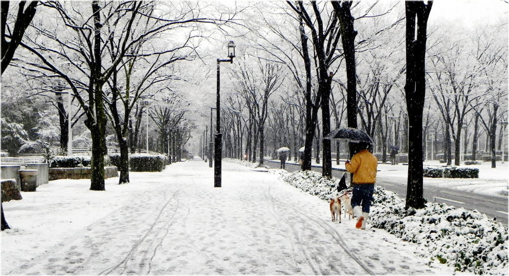 咲洲団地の雪 ワンちゃんの散歩