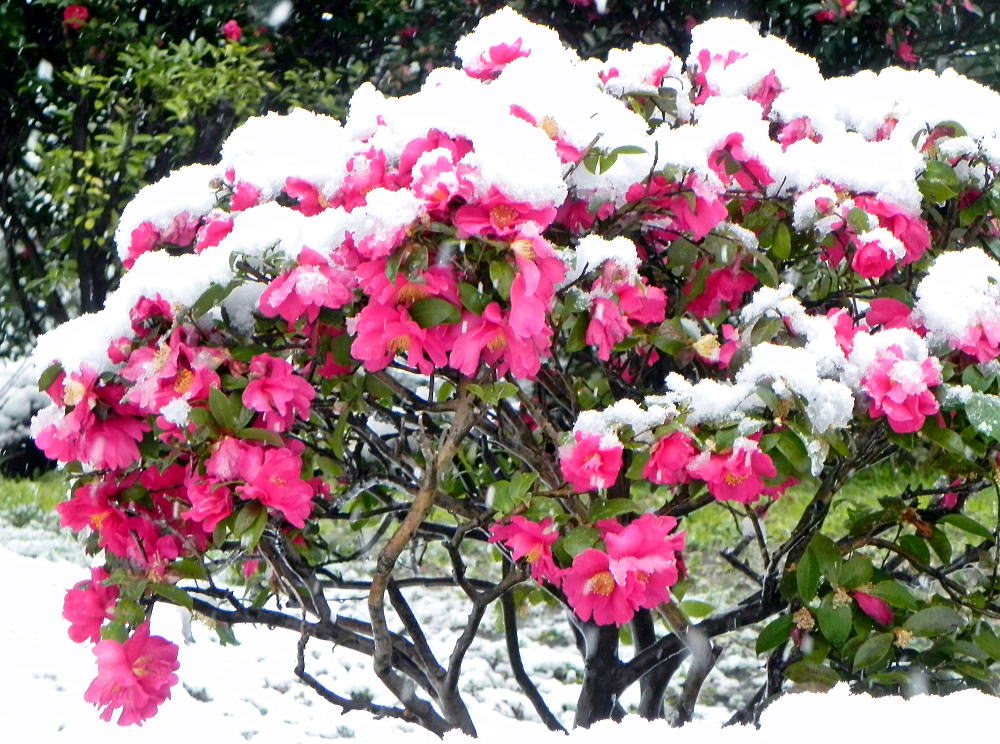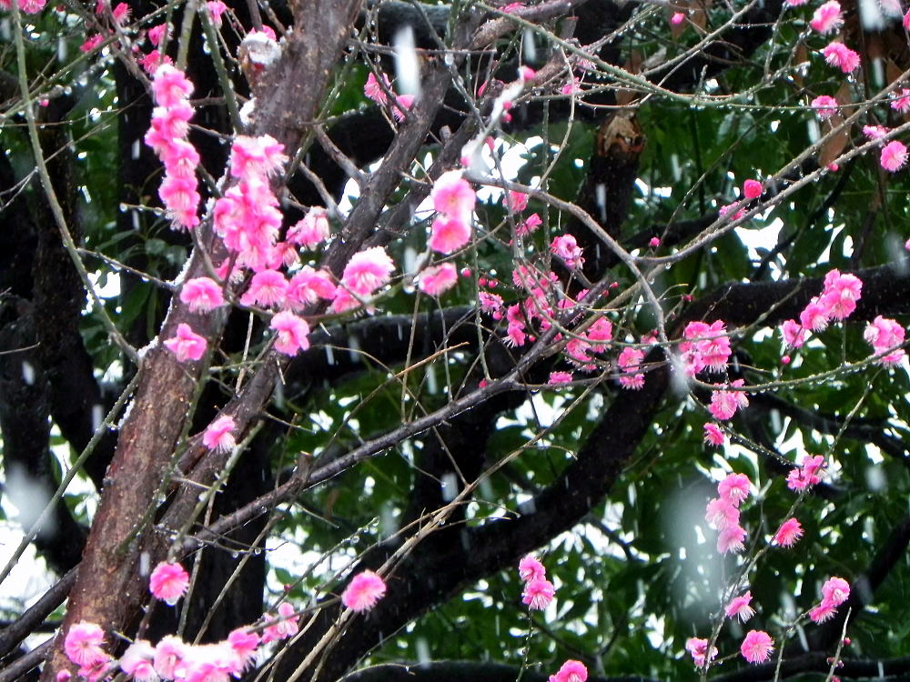 紅梅と雪