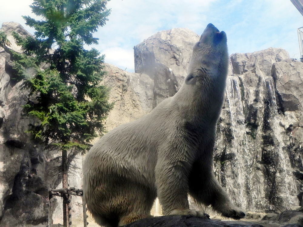 吠えるシロクマさん 旭川動物園にて