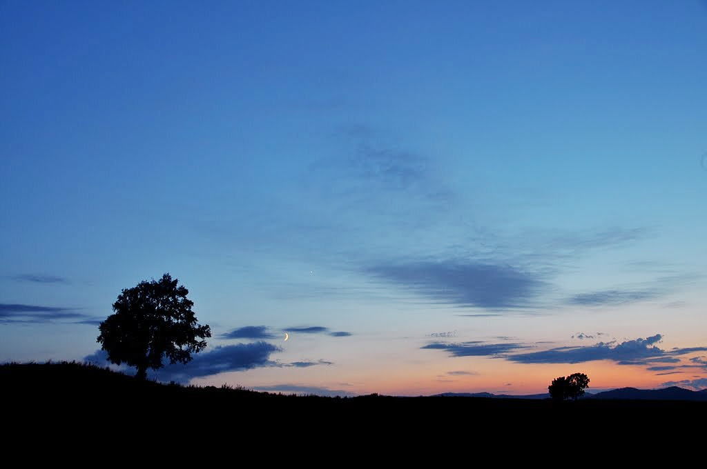 中富良野の夕刻と三日月