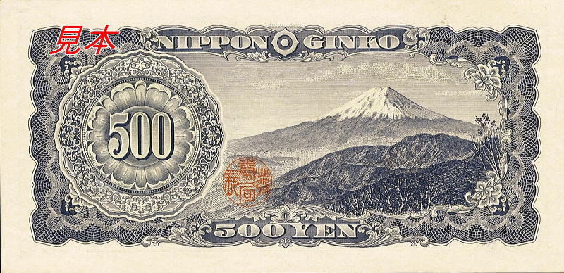 雁ガ腹摺山からの富士山 500円札3種の B券 現在流通していない