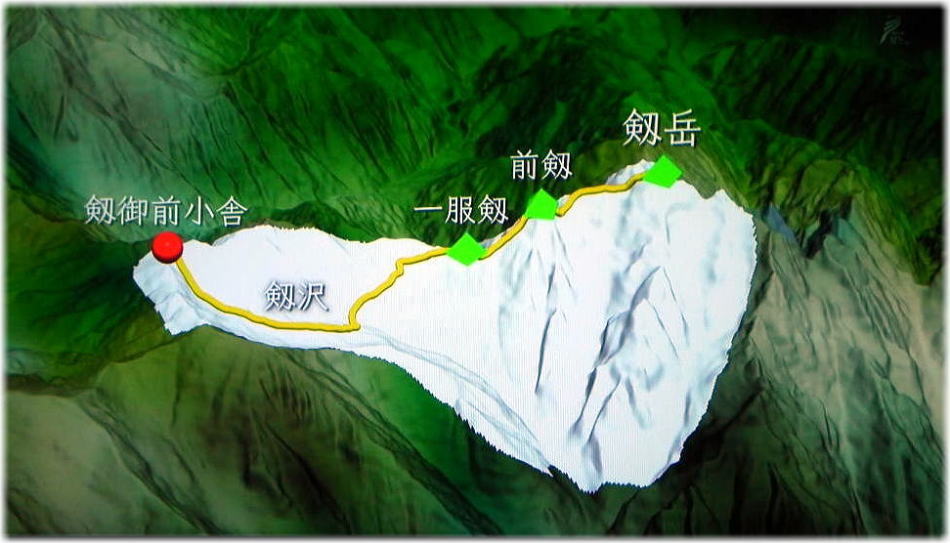 剣御前小舎 (しょうしゃ・小屋) から雪渓を経て剣へ