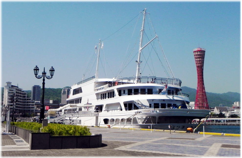 神戸港 ベイクルーズ船とポートタワー