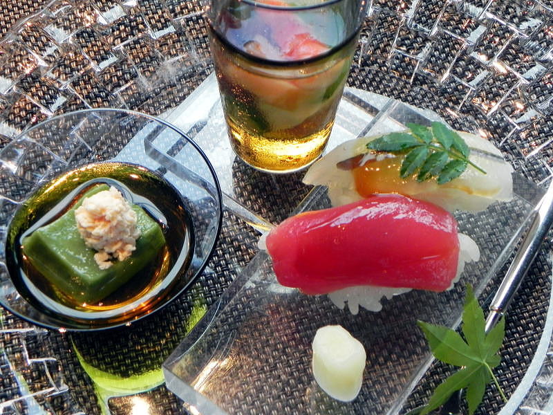 先附け よもぎ豆腐 鮪 細魚 (さより) 木の芽寿司・