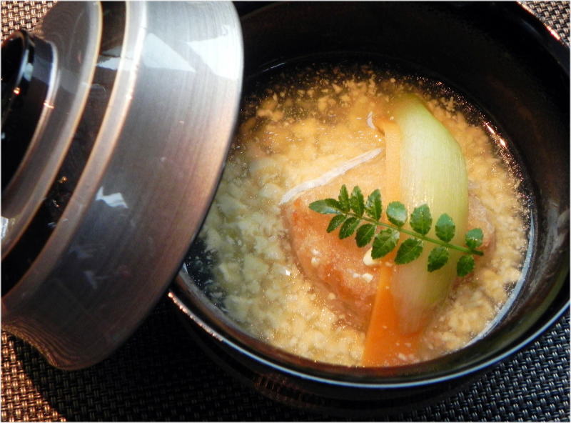 椀盛り 揚げ胡麻豆腐の金波仕立て・