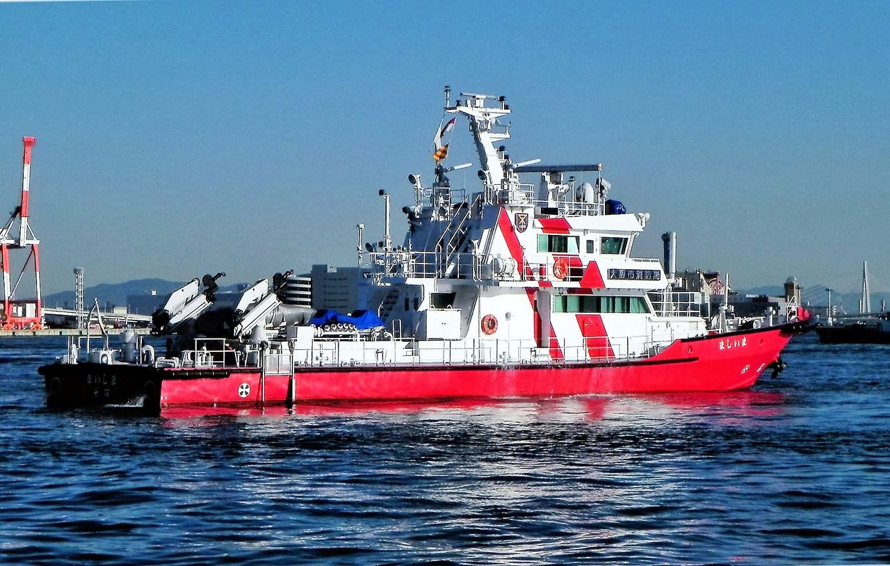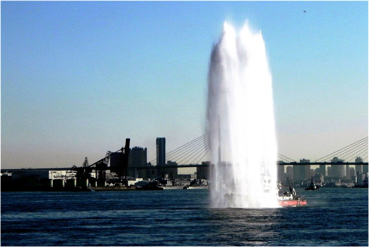 歓迎放水の大阪市消防艇・