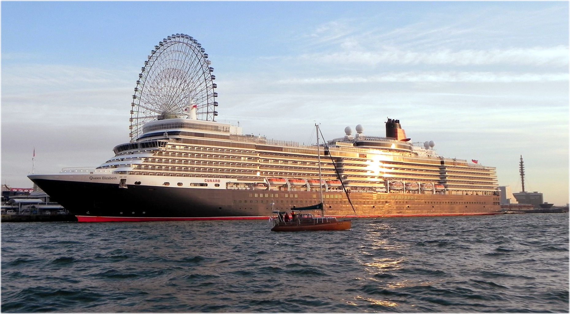 クイーン・エリザベス と大阪港白灯台