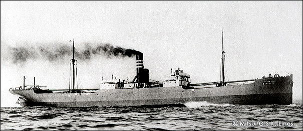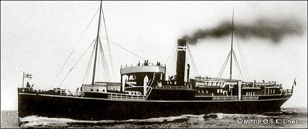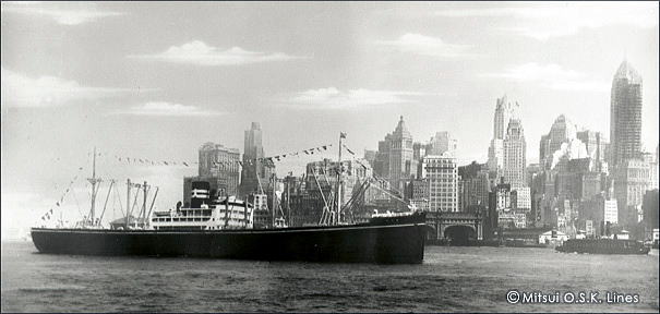 煙突に大の字 商船三井120年より 画像をクリックで大きくなります・