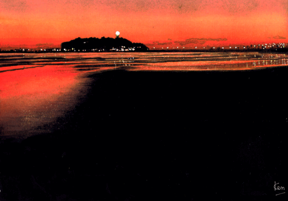七里が浜から見る江の島灯台 画像をクリックで大きくなります・