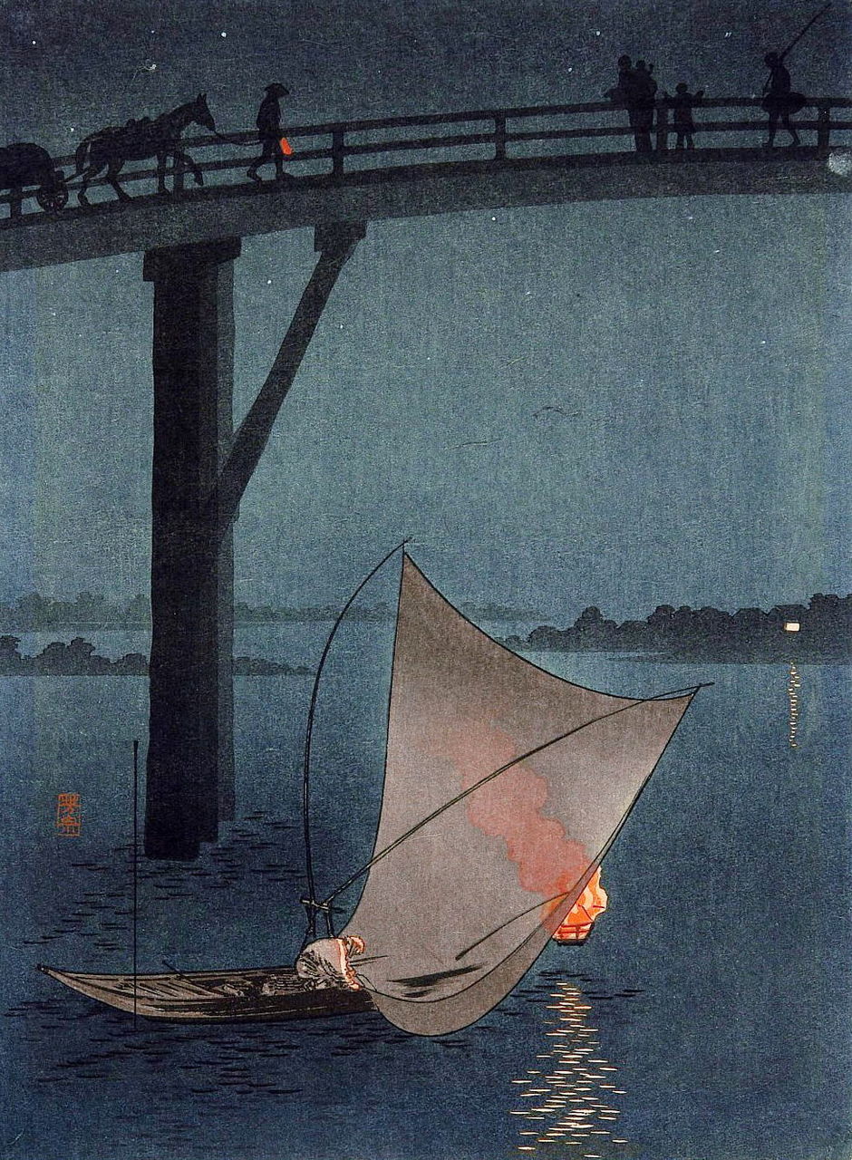夜の新川 川瀬巴水